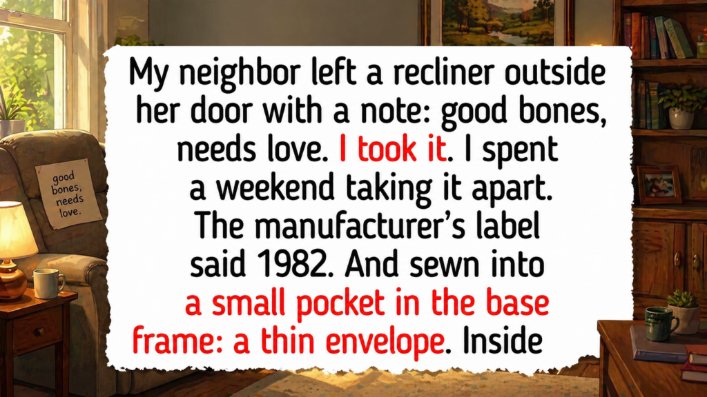 A discarded recliner revealed a hidden photograph from 1986, reconnecting a woman with a long-lost memory of her mother.